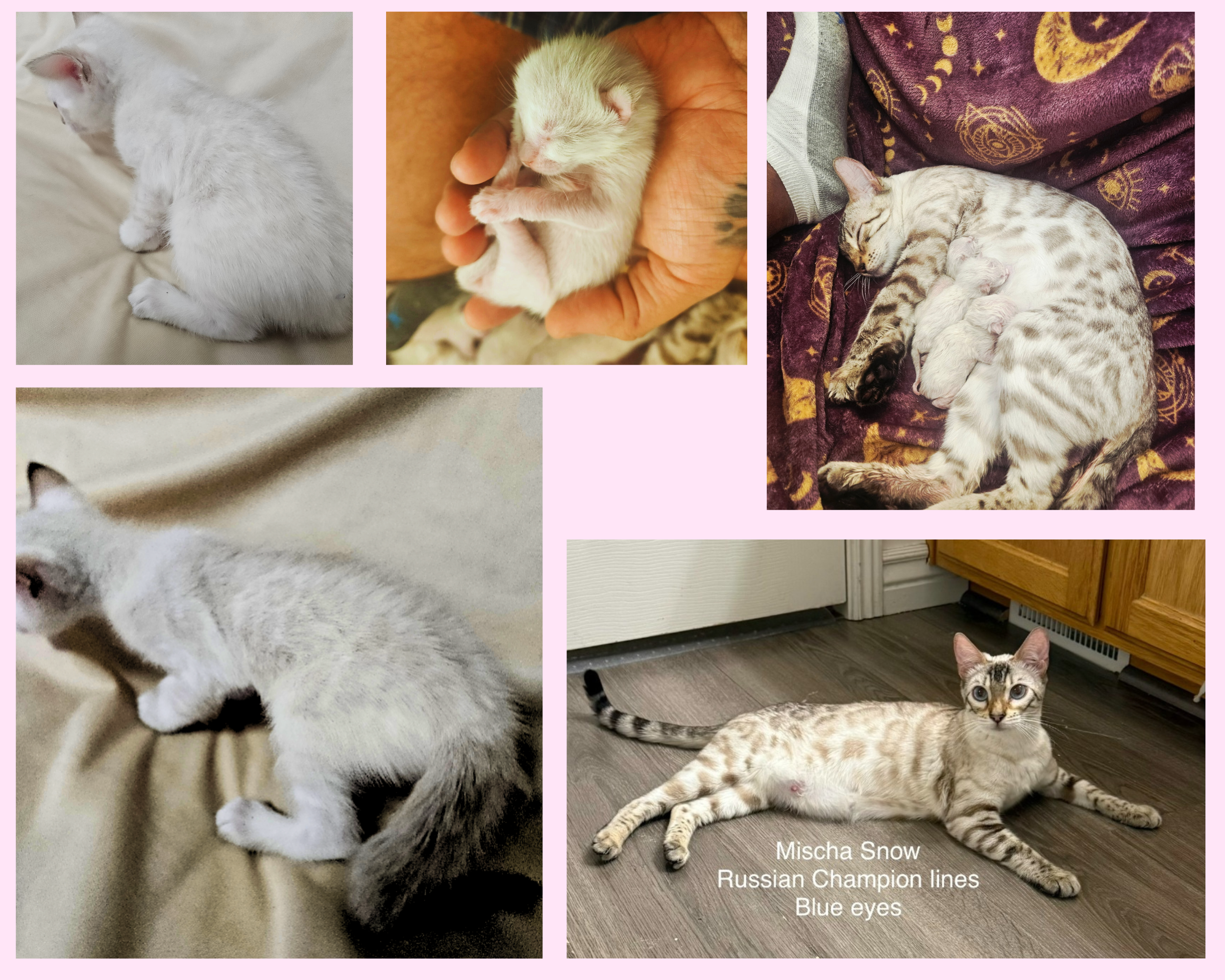 We are currently accepting deposits for our Russian Snow Bengal kittens, located in West Haven, Utah. Kittens will be ready to go home at the end of January. The mother is of Russian descent and the father is Russian American, and both parents have been fully health tested.